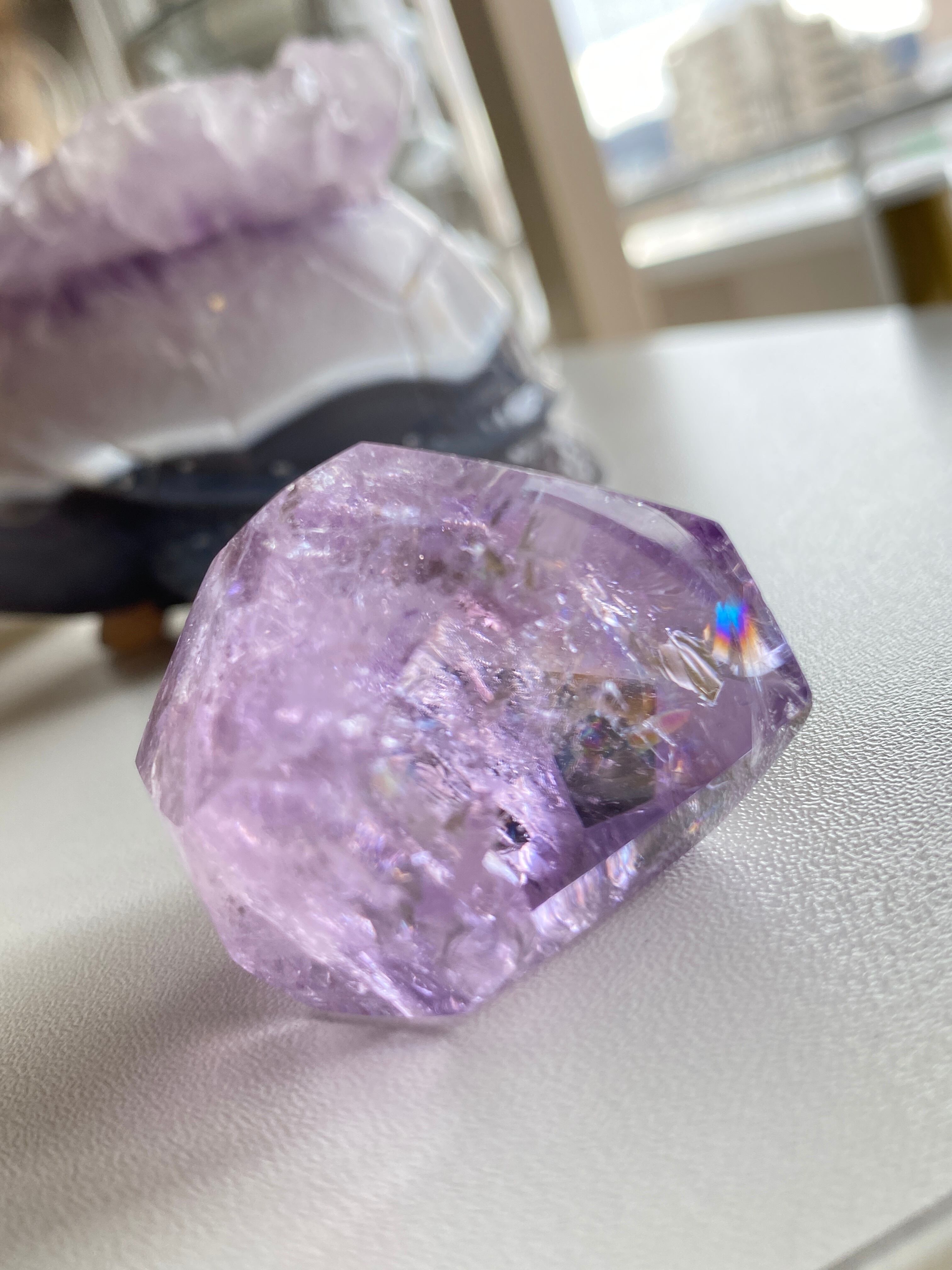 小ぶりですが宝石と同じ美しく透き通り輝きを放つアメジストの極上の部分だけを切り抜いたポリッシュ。